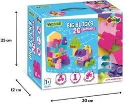 Wader nagy kockák 26 darab rózsaszín egy nagy, színes építőkocka készlet egyedi rózsaszín, lila, zöld, kék és vanília árnyalatokkal. A kockák korlátlan lehetőséget biztosítanak a kreatív játékra és a motoros készségek fejlesztésére kisgyermekek számára.