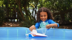 Minőségi műanyag, telt színek és stabil kivitel a kádba, medencébe és a tengerhez. Lehetőség egy kis katamarán rögzítésére (nem része a csomagnak).