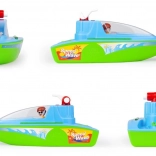 Elég néhány nyomás, és a hajó vízsugarat lő ki. Elem nélkül, tisztán mechanikusan – biztonságos és szórakoztató vízi játék.