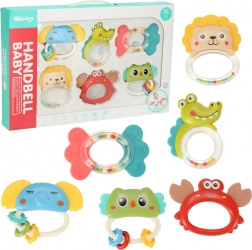 Ez a színes 6 darabos szenzoros csörgő és rágóka készlet ideális társ a baba első napjaitól. Minden játék egyedi formájával és színével hívja fel magára a figyelmet, és a puha éleknek köszönhetően kíméletes rágókaként is szolgál a fogzás időszakában.