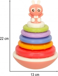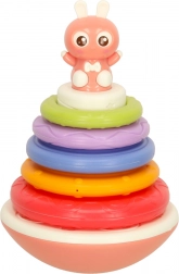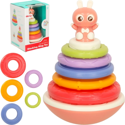A Bibi-Inn ringató játék úgy lett tervezve, hogy stimulálja a gyermek látását, hallását és motorikus képességeit. A bázis tetején található mókás nyuszi és színes karikák sok órányi szórakozást nyújtanak, miközben szivárvány toronyt építenek.