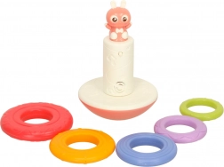 Ez a játék kiváló minőségű anyagokból készült, amelyek biztosítják gyermeked biztonságát. A karikák összerakásán keresztül a gyermek megtanulja a koordinációt és a finommotorikát, míg a vidám dallamok további játékra ösztönzik.