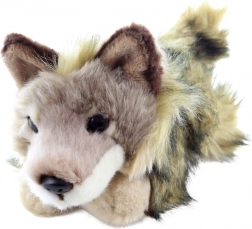 Feltűnően valósághű részleteivel és színeivel a plüss prérifarkas hiteles élményt nyújt játékhoz vagy kiállításhoz.