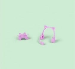 A szett része a látványos, fülecskékkel díszített fejhallgató és a kis játékkonzol‑vezérlő – tökéletes kellékek játékos történetekhez és digitális kalandokhoz.