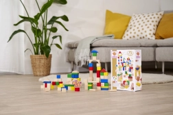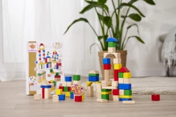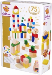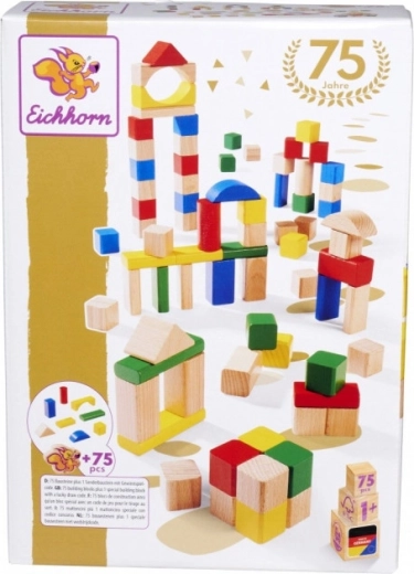 Az EICHHORN fa építőkockák jubileumi készlete a márka 75. évfordulója alkalmából készült, és a 1 éves kortól ajánlott gyerekeknek végtelen építési lehetőséget kínál. A különböző formák és színek támogatják a fantáziát, a finommotorika fejlesztését és a kéz–szem koordinációt. Játék után minden elem könnyedén visszapakolható a csomagolásba.