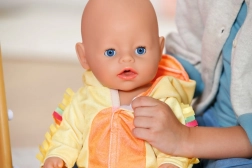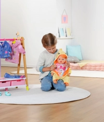 A ruhácska ideális „fürdetés” után és a mindennapos játékhoz is – a puha textil melegen tart, ugyanakkor tartós a hosszan tartó szórakozáshoz. Remekül illik a BABY born ruhatárába és a szerepjáték-kiegészítőkhöz.