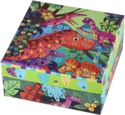 Fedezze fel a dinoszauruszos motívumok világát ezzel a kreatív készlettel, Gyémánt képek Dinoszaurusz! Minden kép előre elkészített matricán van, amelyet a gyerekek díszíthetnek saját elképzeléseik szerint. Ez az alkotás nemcsak hogy fejleszti a kreativitást, hanem segít javítani a finommotoros képességeket és a készségeket a gyermekeknél.