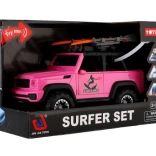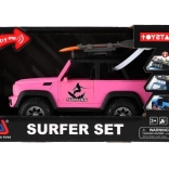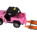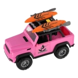 Ez a rózsaszín terepjáró az akciódús játékot és a tengerparti kalandokat kedvelő kis felfedezők számára készült. A jármű felszereltsége: