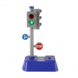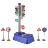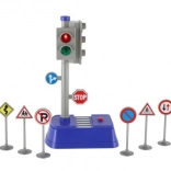 A készlet a lámpán kívül tartalmaz néhány közlekedési jelet, amelyek megtanítják a gyerekeket a közlekedési helyzetek felismerésére és megértésére.