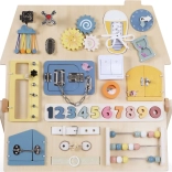 Szenzoros tábla Házikó egy ideális játék, amely fejleszti a kézügyességet, kíváncsiságot és a gyerekek finom motorikus képességeit. Számos tevékenységet kínál, amelyek a tanulást szórakozássá alakítják.