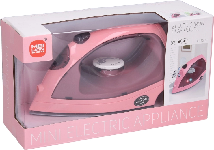 Vasaló effektusokkal. Méret: 21,5 × 9 × 10 cm. Fény- és hangeffektek. A tartályba vizet kell tölteni. A gomb megnyomása után a vasalóból gőz jön ki. 3x AA elem nem tartozék.