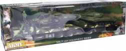 - Komplett akciószett: vontató, helikopter, tank, katona és kiegészítők