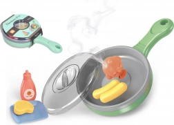 A készlet mindent tartalmaz, amire egy kis szakácsnak szüksége lehet: serpenyő fedővel, tányérka, ketchup és 4 darab étel. A 27 cm-es méretnek köszönhetően a serpenyő kényelmesen fogható, és ideális a gyerekkonyhába.