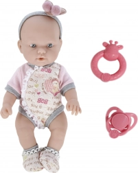 A 25 cm-es, aranyos baba minden gyermeket megörvendeztet. A csomagban található egy cumika és egy csörgő, így a kicsi valósághű szülős játékokat játszhat, miközben fejlődik a finommotorikája és a baba gondozása iránti készsége.