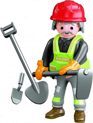 Építőmunkás figura 7 cm szerszámokkal és útmutatóval. Ideális kis építők számára. Különböző variációk elérhetők.