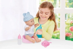 Ez a cuki, pisilős, 30 cm-es baba ideális a gyerekek fantáziájának és gondoskodó készségeinek fejlesztéséhez. Ivás után a cumisüvegből a baba a bilibe tud pisilni, és a 10 valósághű hangnak köszönhetően a játék még élethűbb. A praktikus kiegészítők, mint a tányér és a kanál, további dimenziót adnak a játéknak.