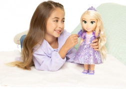 A DISNEY Hercegnő Aranyhaj baba örömet szerez minden meséket és kreatív játékot kedvelő gyermeknek. A fényes ruha finom mintákkal, a korona és a hosszú szőke haj fésülésre és új frizurák készítésére hív. A tartós kivitel mozgatható ízületekkel természetes pózolást és hosszan tartó szórakozást biztosít.