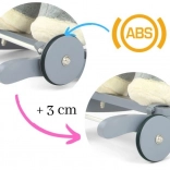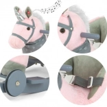 A hintaló fa rudakkal, lábtartókkal és fogantyúkkal rendelkezik, amelyek segítenek az egyensúly megtartásában játék közben, valamint összecsukható kerekekkel, amelyeknek köszönhetően néhány másodperc alatt gyönyörű plüss járművé alakítható.