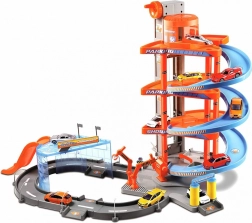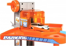 Ez a többemeletes Bburago garázs autómosóval számos funkcionális elemet rejt! Vidd fel a kisautót a lifttel egészen a garázs legfelső szintjére, majd engedd le az úton! Állj meg a szervizben, mosd le az autót a mosóban, és haladj át az emelőrudas sorompókon!