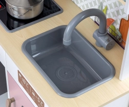 Részét képezi a átlátszó ablakos sütő, a mikrohullámú sütő, a realisztikus jégkocka-adagolós hűtő és az egyrekeszes mosogató. A panelen világítással és hanggal működő páraelszívó, csúsztatható akasztók a kiegészítőknek, valamint mutatható mutatós analóg óra segít az idő tanulásában. A falon lévő konyhai elemek illusztrációi támogatják a fantáziát és a témához illő játékot.