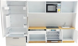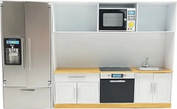A szett mindent tartalmaz, amire szüksége van egy teljesen felszerelt konyha megalkotásához. Parányi háztartási készülékek – sütő, mikrohullámú sütő, hűtőszekrény, fagyasztó, sőt még jégkockakészítő is!