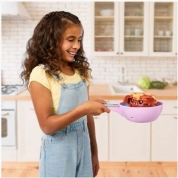 Fedezd fel a vidám főzést a varázslatos Cookeez Makery serpenyővel! Készíts „tésztát”, nyomd meg a gombot a nyélen, és „megfordításkor” a serpenyőben megjelenik egy illatos plüss palacsinta. Édes meglepetés vár rád – 3 különböző figurából az egyik, amelyek kellemes illatúak, és megnyomásra vicces hangokat adnak ki. Az elemek a csomag részei, így a móka újra és újra átélhető.