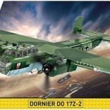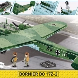 Ez a nagyméretű Dornier Do 17Z-2 bombázómodell 57,5 cm-es szárnyfesztávjával és 49 cm-es hosszával tűnik ki. Az új, kétkomponensű fröccsöntéssel készült elemeknek köszönhetően precízen adja vissza az orr-rész és a kabin jellegzetes formáját. A nyomtatott műszerekkel ellátott pilótafülkébe a mellékelt két pilótafigura ültethető. Minden grafikai részlet tartós nyomtatással készült – nincsenek matricák.