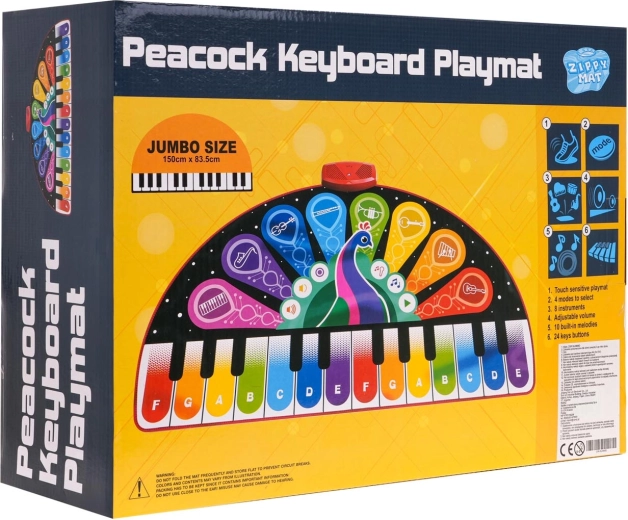 Zippy Mat Muzikális Játszószőnyeg Páva nagyszerű szórakozás 3 éves kortól, amely ötvözi a mozgást és a zenei készségek fejlesztését. Ez a színes szőnyeg 24 billentyűvel és nyolc különböző hangszerrel, mint például a zongora, vibrafon vagy gitár, órákig tartó interaktív zenei szórakozást nyújt a gyerekeknek.