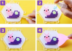 Csak helyezze el a gyöngyöket a minta szerint, és permetezze le vízzel. Gyönyörű és tartós minták készülnek, amelyek gyermekek számára is alkalmasak.