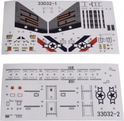 A matricalapok és a levehető rakéták teljessé teszik a modell végső megjelenését. Adjon hozzá jelöléseket és insigniákat, amelyek a repülőnek realisztikus, gyűjtői karaktert kölcsönöznek.