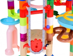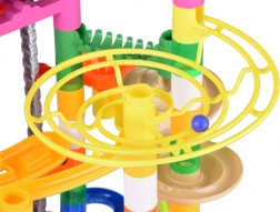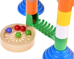 Építs változatos szerkezeteket csövekből, kanyarokból, spirálokból és tartóelemekből, és figyeld, ahogy a golyók száguldanak a rámpákon. Az elektromos felvonónak köszönhetően a golyók automatikusan visszatérnek a startpontra, így a szórakozás megállás nélkül folytatódik. A masszív, élénk színű műanyag elemek könnyen illeszthetők és stabil szerkezetet biztosítanak.