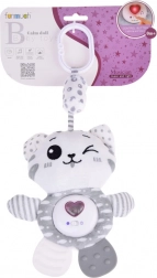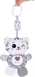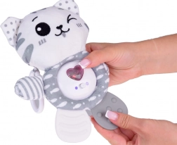 Ez a pihe-puha cica pocakjában szívecske található – megnyomásra nyugtató hangok és dallamok szólnak, amelyek minden megnyomással változnak. A test puha plüssből készült, különféle textúrákkal a tapintási ingereléshez, belül pedig csörgő és susogó elemek segítik a hallás fejlődését.