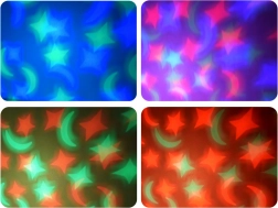 A beépített vetítő színes csillagokat és holdat rajzol a szobába piros, rózsaszín, zöld, narancs és kék árnyalatokban – ideális az esti rituálékhoz.