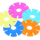 Az intenzív színek serkentik a látást, a domború szélek pedig a tapintást. A pehely elemek könnyűek, tartósak, és ideálisak egyéni és közös játékhoz. A pelyhekből betűk és számok is kirakhatók, így a készlet természetes módon támogatja a korai tanulást.