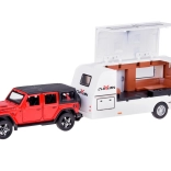 A terepjáró és lakókocsi szett valósághű utazós és kempinges játékélményt kínál a gyerekeknek. A fém–műanyag kialakítás tartósságot és hosszú élettartamot biztosít, míg a fények és hangok fokozzák a vezetés élményét. A pull-back meghajtásnak köszönhetően elég az autót hátrahúzni és elengedni – magától előreindul.