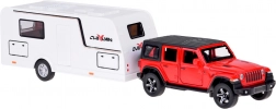 A terepjáró és lakókocsi szett valósághű utazós és kempinges játékélményt kínál a gyerekeknek. A fém–műanyag kialakítás tartósságot és hosszú élettartamot biztosít, míg a fények és hangok fokozzák a vezetés élményét. A pull-back meghajtásnak köszönhetően elég az autót hátrahúzni és elengedni – magától előreindul.