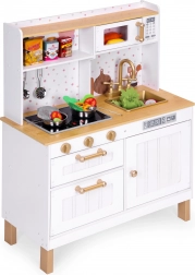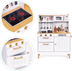 Fából készült gyermekkonyha hangokkal és LED világítással, nagy méretű, nyitható szekrényekkel és 7 kiegészítővel, ECOTOYS