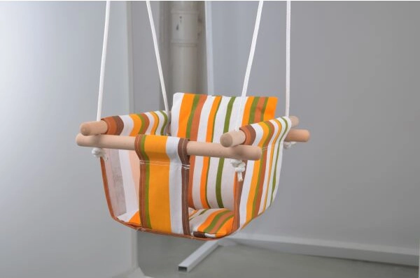 Csíkos, pamutból készült gyermek textil hintaszék