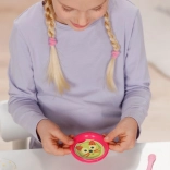 A varázslatos tányér és bili a víz használatával felfedi a kiegészítők vidám világát, segítve a gyerekeket a gondoskodó játékban és bilire szoktatásban.