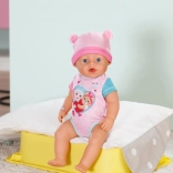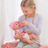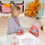 Merülj el a Baby Born világában Emma babával, aki elbűvölő új ruhájában érkezik, és tíz valósághű funkciót kínál. Ez a szett tíz szórakoztató kiegészítőt tartalmaz, mint varázslatos tányér, kanál, cumi, üveg, pelenka, és bili víz funkcióval. Emma tud inni, sírni igazi könnyekkel, aludni, fürödni és pelenkáját használni. A szemei nyílnak és záródnak a forgó cumi segítségével. Nincs szükség elemekre, és 3 éves kortól ajánlott.