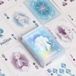 Minden kártya gondosan illusztrált, az udvari lapokat Elsa, Anna, Olaf, Sven és más hősök díszítik összetéveszthetetlen bájjal. A hátlap elegáns jeges motívumot kapott, míg a doboz holografikus hópehellyel hívja fel magára a figyelmet – ideális ajándéknak és gyűjtők számára is.