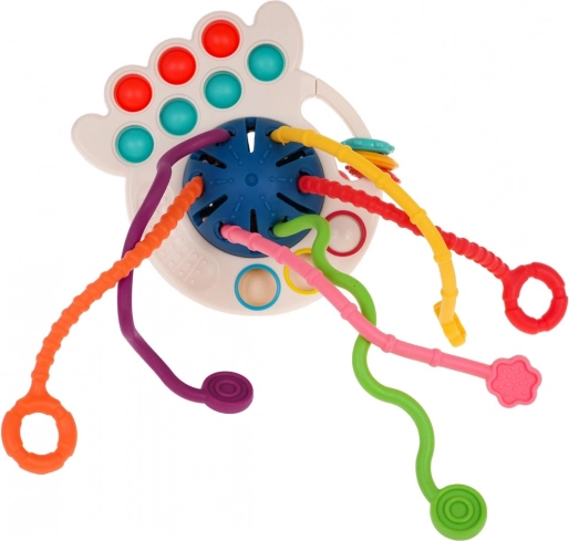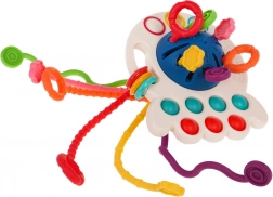 Szenzoros 4 az 1-ben játék, polip, 18 hónapos kortól. A játék gyermekbarát, biztonságos anyagokból készült, nincsenek éles szélei. Az élénk színek játékra ösztönzik a gyermeket. Használható rágókaként, a kisgyermek húzhatja, tolhatja, különböző elemeket mozgathat, és gyakorolhatja a kéz-szem koordinációt. A játék kiságyhoz, babakocsihoz vagy autósüléshez is rögzíthető autós utazás közben. . A játék funkciói: . - 18 hónapos kortól ajánlott, .- biztonságos anyagokból készült, .- élénk színek, amelyek felkeltik a kisgyermekek figyelmét, .- sokféle játéklehetőség: .* gumis zsinórok húzáshoz és rágcsáláshoz, .* pop it – buborékok nyomkodása és préselése, .* gomb mozgatása szlalompályákon, .* gyöngyelválasztó, .- a játék több helyre is rögzíthető: kiságy, babakocsi stb. .- könnyen tisztítható. . |