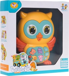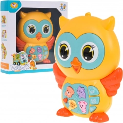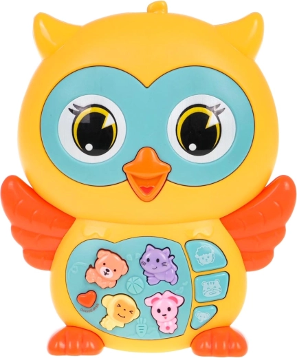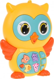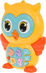 . | Interaktív bagoly hang- és fényfunkcióval 6 hónapos kortól. A bagoly a legmagasabb minőségű műanyagból készült, ütésálló és biztonságos a kisgyermekek számára, nincsenek éles szélei. Élénk színekben készült, hogy felkeltse a gyermek figyelmét és játékra ösztönözze. A bagoly hasán található panel gombjai állathangokat (első üzemmód), dallamokat, Do-Re-Mi hangokat (második üzemmód) és fényhatásokat aktiválnak, a bagoly szárnyain villogó fények formájában. Az üzemmódokat egy szív alakú gombbal lehet váltani. A játék rendelkezik hangerő-szabályozással. 2 db AA 1,5 V-os elemmel működik (nem tartozék) .. A játék funkciói: . - 6 hónapos kortól ajánlott, .- a legmagasabb minőségű műanyagból, élénk színekben, .- biztonságos, éles szélek nélkül, .- ütésálló, .- fényhatások: világító bagolyszárnyak, .- hanghatások: .* állathang üzemmód: kutya, cica, majom, juh, tigris, elefánt, .* hang üzemmód: dallamok, Do-Re-Mi hangok, . |