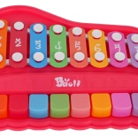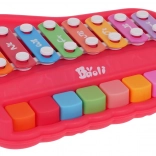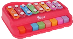 Zenei zongorácska és xilofon 2 az 1-ben a legkisebbeknek 18 hónapos kortól, fejleszti a ritmusérzéket és a finommotorikát. Minőségi műanyagból és fémből készült, élénk színekben, a csomag tartalmaz 2 ütőt a könnyű játékhoz és a hangok felfedezéséhez.