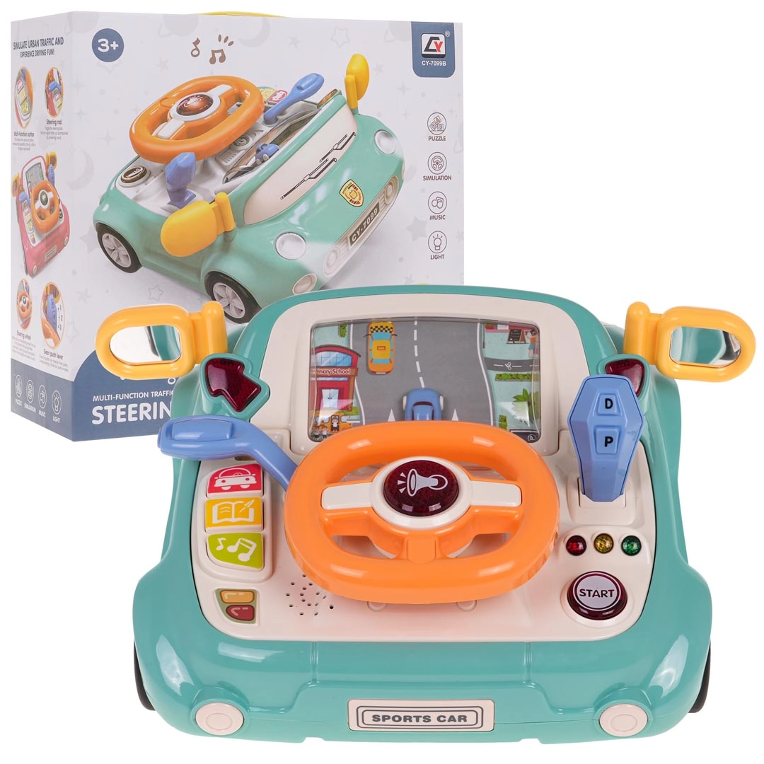 Forgatható kormány megvilágított dudával, váltókar és működő irányjelzők adnak valódi vezetési élményt, és ösztönzik a gyerekeket a közlekedési szabályok felfedezésére.
