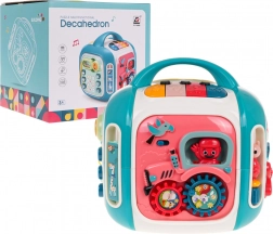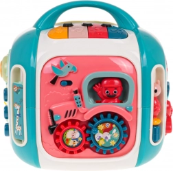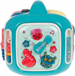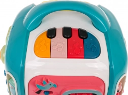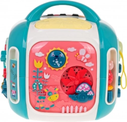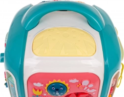 Az interaktív kocka játékra és tanulásra egyaránt készült. A gyerekek felfedezik a színeket, formákat, állatok és járművek neveit, ujjgyakorlattal fejlesztik a forgó elemeknél az ügyességet, valamint különböző dallamokat és hangokat ismernek meg. A felső panel zongorával 3 üzemmódot és érzékeny billentyűket kínál a könnyű játékért.