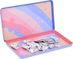 Mágneses mini dominó ideális gyors és szórakoztató játékra utazás közben. A készlet 28 mágneses darabot tartalmaz, és minden darab mérete 2,5 x 1,5 cm.