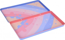 Színes műanyag tálca fedéllel, amely lehetővé teszi az egyszerű szervezést és a játék biztonságos tárolását.