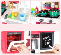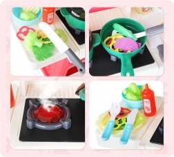 Interaktív gyerekkonyha pasztell színekben, ideális választás minden kis szakácsnak. Rengeteg szórakozást nyújt számos mozgó és nyitható elemmel, amelyek felkeltik a gyerekek figyelmét, és biztonságos alternatívát kínálnak az igazi konyhához.