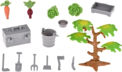 A készlet műanyag állatfigurákat tartalmaz, mint például kutyák, lovak, malacok, juhok és tehenek, amelyek részletekre adóan készültek. Nem hiányozhatnak a farmer és a gazdasszony figurái sem, amelyek gazdagítják a játékot a mindennapi gazdálkodási feladatokkal. A készlet része egy traktor utánfutóval, kerti szerszámok és dekoratív matricák a farm személyre szabásához.